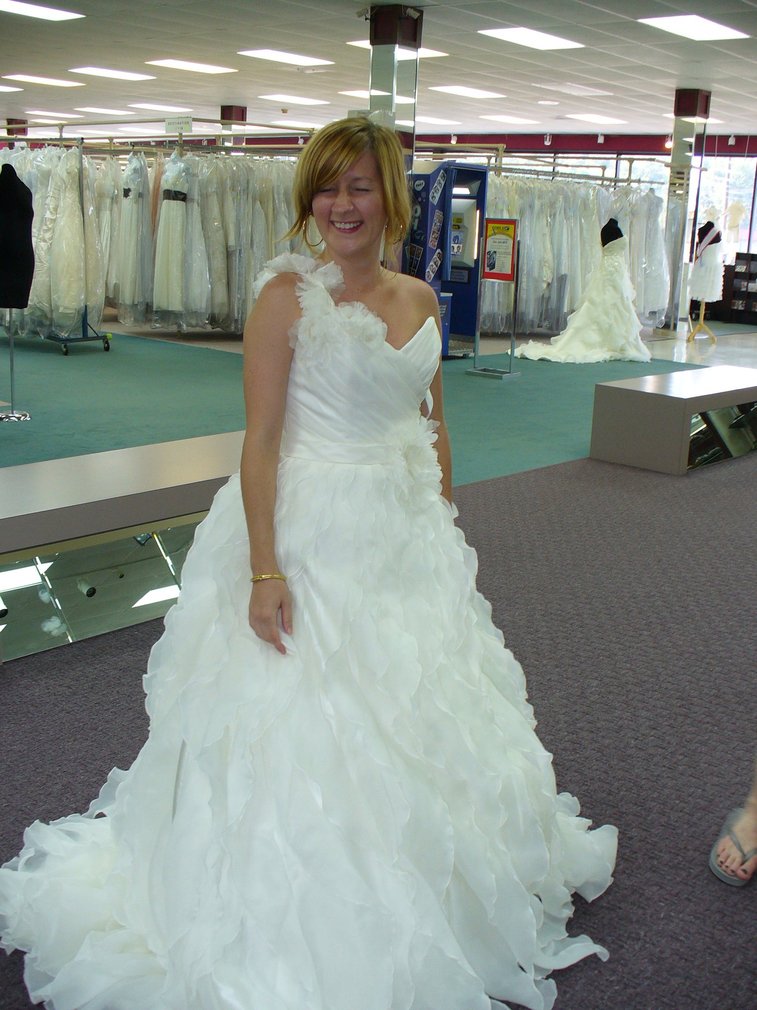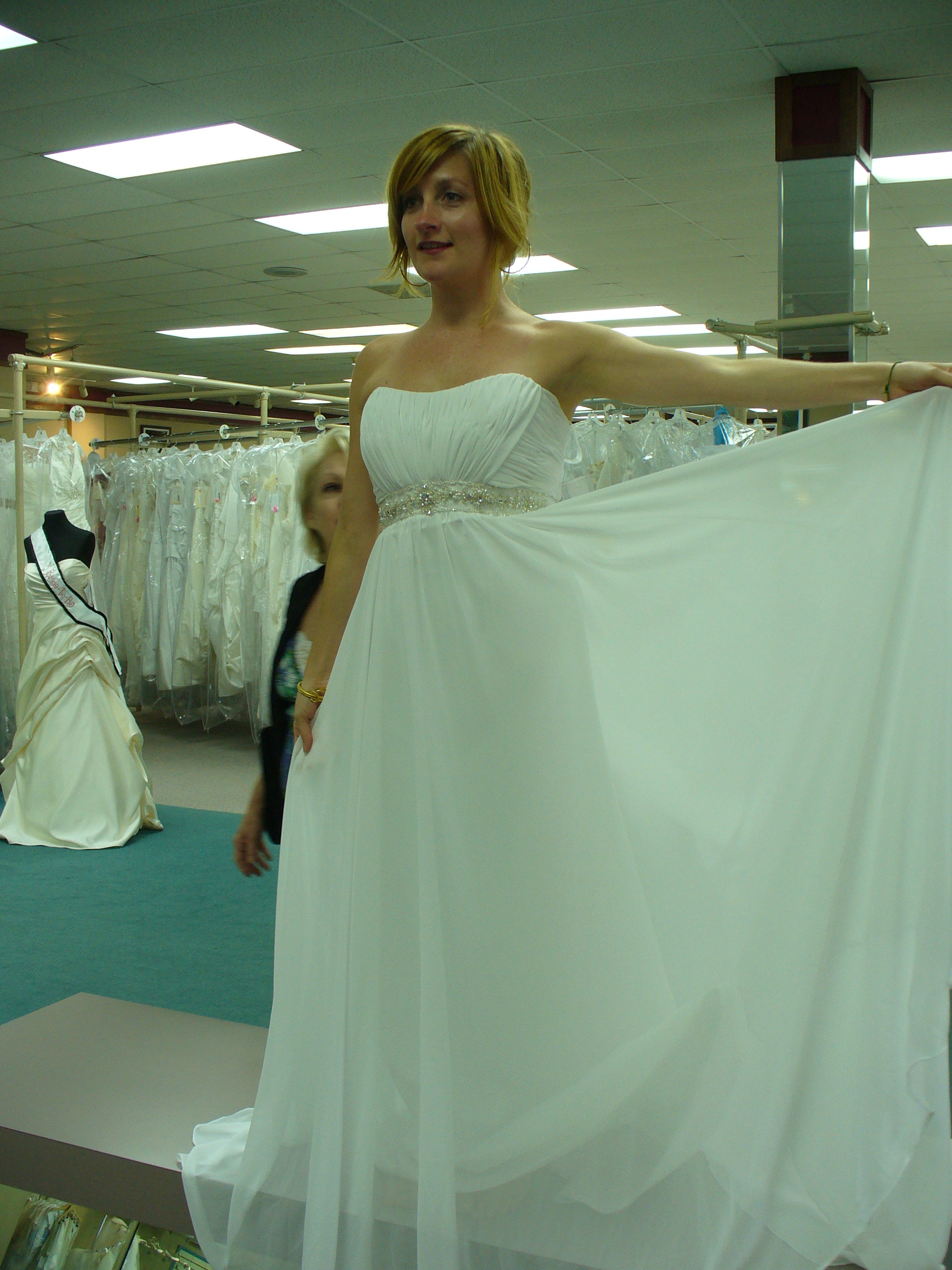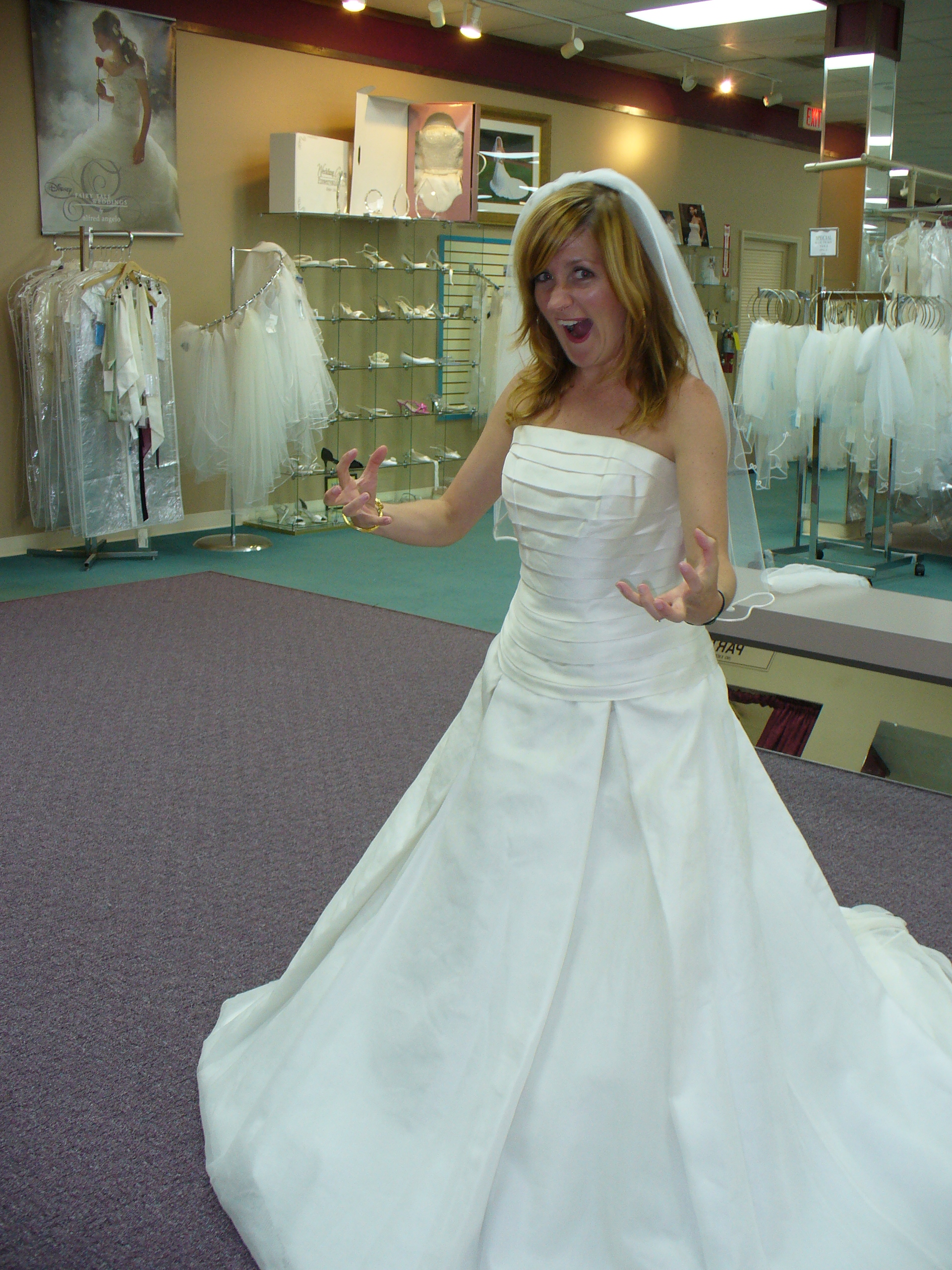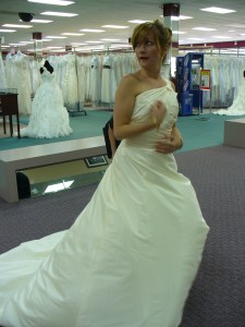 Last fall My mom, Jammer and I went to a Bridal Super Market of sorts just to try stuff on for the sake of doing so. However we… ahem… lounged by the pool at my Mom’s hotel a little long and only gave ourselves about an hour once we finally got there. I let my Mom choose dresses that day… (These pictures were taken last August.)