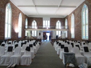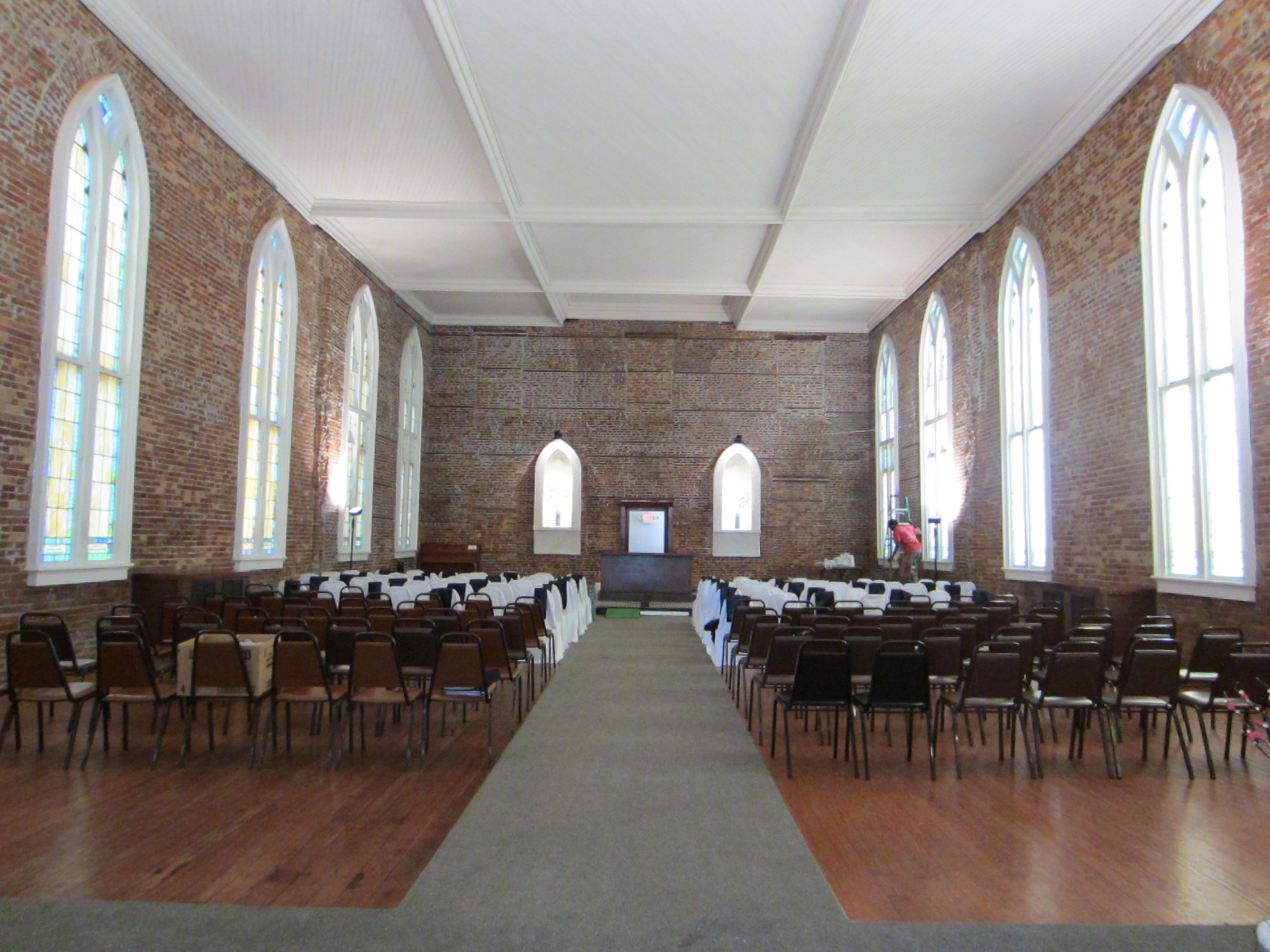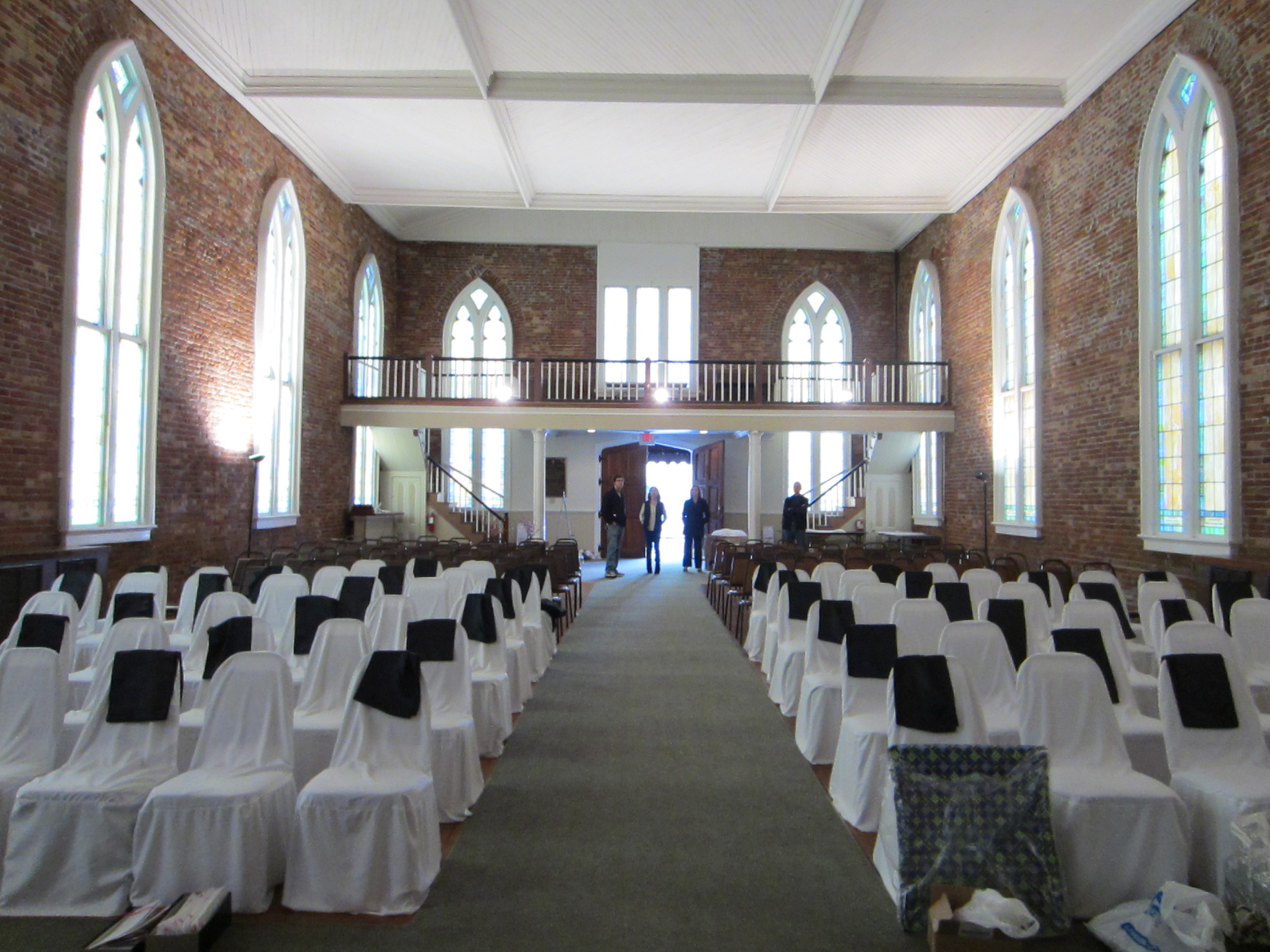 I took all but the first picture (Which is From Their Website) when I went to see the space this past November. As you can tell, they were setting up for a wedding that day… so there’s very little frill. Isn’t it beautiful?! When I opened the front door– I just knew. I saw Napkin at the end of the aisle, I saw my sister… It just clicked.