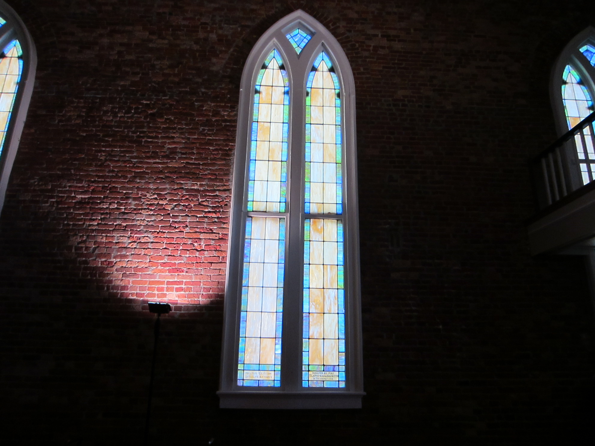 My friend Jammer and I had talked about a few places and had visited another site… but nothing really caught my eye. Then Napkin’s mom (God Bless her) mentioned this place and so we decided to go and see it. I can’t stress enough that I’m not really the wedding type. It isn’t something I’ve thought about or dreamed of or written the script for… so I was really surprised to find myself on the verge of tears when I opened the door to St. Thomas. It’s right downtown in Wilmington (which is where we decided to get married because it’s where he’s from and where I love) It’s a large, open space with huge, stained glass windows and a long, straight aisle that I can’t wait to walk down. One of the things I love the most about it is that it’s such a beautiful space that few decorations will be needed. Something to amplify the colors in the stained glass, soft lighting for the evening… that sort of thing. Here are some pictures: