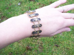 Well, you know how when you really want something you think about it after the fact a lot? You curse yourself for missing out, you think of the outfits you could have planned around it? That sort of thing? I’ve been doing that. So last night while laying I started looking around on Etsy. At first, it was to find a handmade version of the bracelet that I wanted. I found, instead, an AMAZING vintage bracelet that I paid, with shipping, ten dollars for and I CAN’T WAIT TO GET IT. Here it is: