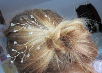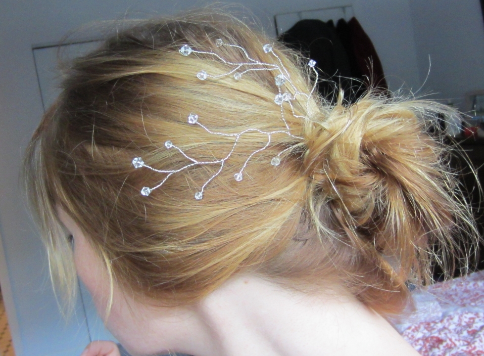 I’ve been email bombing them with different hair ornament ideas from Etsy. As you know from previous posts, I want really no fuss updos with “bridal vine combs” like so: