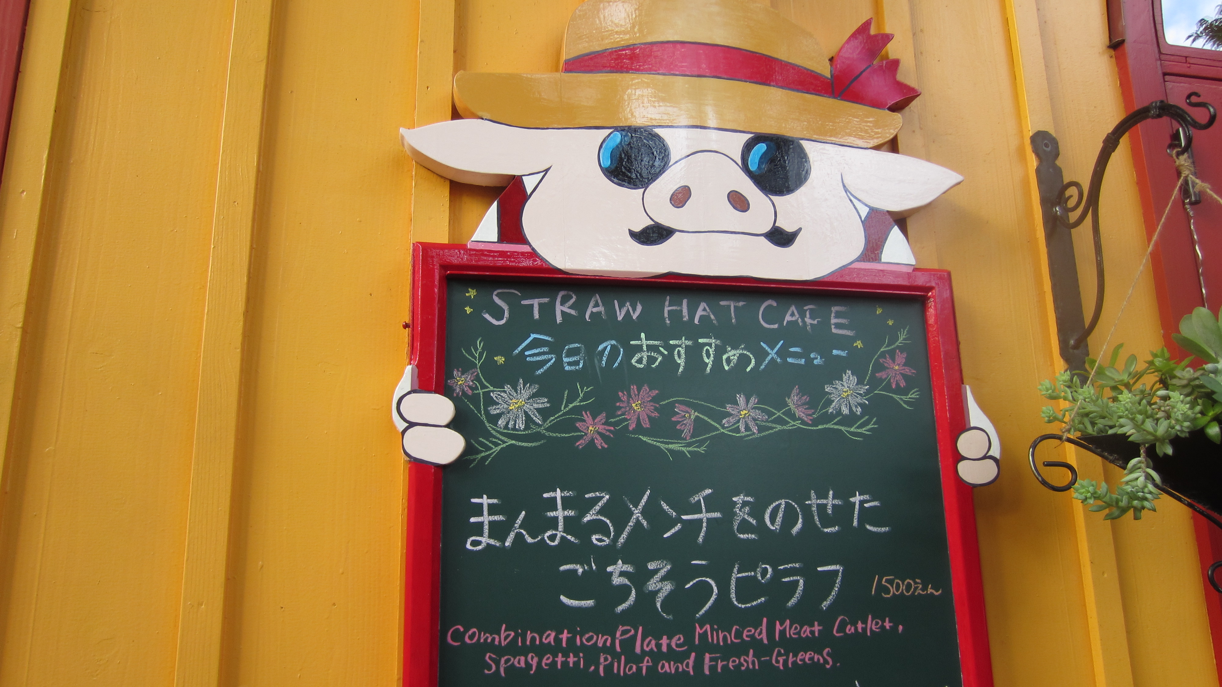There were so many people gathered around him that it was almost impossible to take this picture. Afterwards we headed over to the Straw Hat Cafe (where I told you that we couldn’t get in due to the long wait time…)