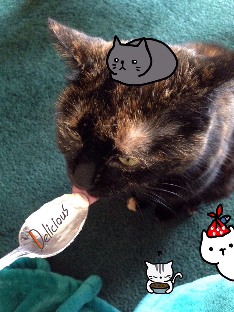 I’m trying to be super sweet to her before we have to leave tonight. I even let her have the last bite of my yogurt this morning: